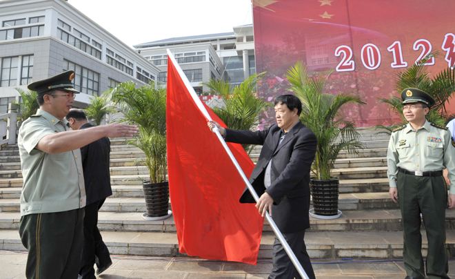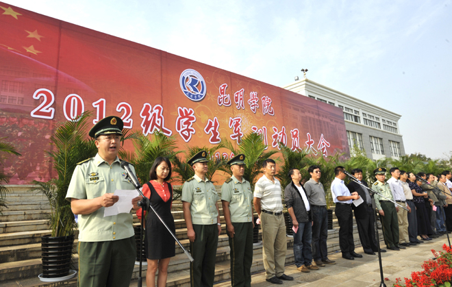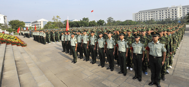 9月4日上午,beat3652012级学生军训动员大会在聂耳广场举行。武警边防部队士官学校训练部部长李荣,学生军训团团长陈应海、副团长申仕兵,继续教育处处长孙利辉,信息技术系主任赵立志,学校党委副书记、国防教育委员会主任孙勇,副校长、国防教育委员会副主任李翔,学校国防教育委员会全体成员,各院(系)主管学生工作领导,带队辅导员、全体承训官兵和2012级4600余名参训同学参加了动员大会。大会由副校长李翔主持。