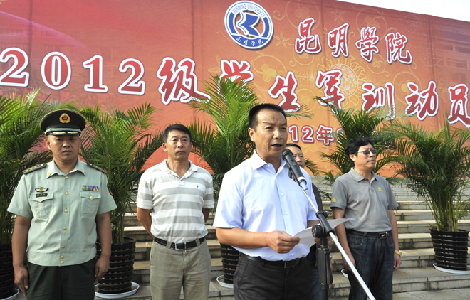 2012级军训团陈应海团长向全体参训人员宣读了学生军训管理规定,对参训教官和同学提出要求,希望同学们能通过军训加强集体观念,培养团队意识,严格要求自己,主动迎接考验,遵守纪律,磨练意志,锻炼体魄,高质量地完成军训任务。