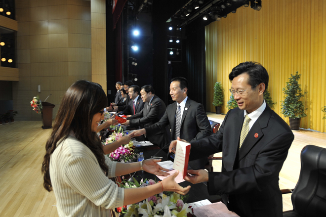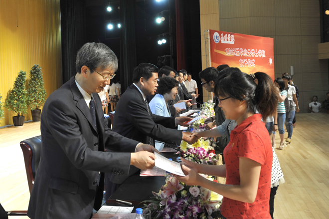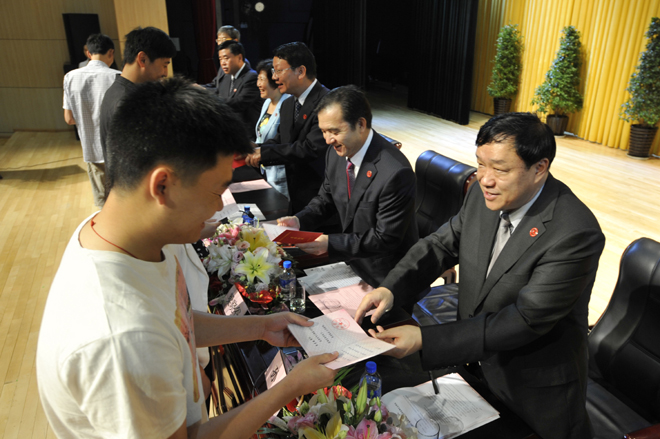 首先,李翔副校长宣读《beat365官方网站关于对2011~2012学年省级三好学生、优秀学生干部、先进班集体进行表彰的决定》和《beat365官方网站关于对2012届省级优秀毕业生、校级优秀毕业生进行表彰的决定》。76名省级三好学生、22名省级优秀学生干部、9个省级先进班集体;196名省级优秀毕业生,593名校级优秀毕业生受到了表彰和奖励。与会校领导分别为获奖个人和集体颁发荣誉证书。