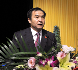 典礼上,梁晓谷书记代表学校致辞。梁书记首先向学业有成的2012届毕业生们表示最热烈的祝贺!梁书记用长者慈祥、深情的话语与同学们一起回忆了一路走来春华秋实三四载、听心湖畔三四年的岁岁月月,感念同学们与学校同成长的点点滴滴;回味着大学生活的每一精彩片段——第一次走进新校园的踏实与宽慰,师生伫立聂耳广场、高唱激昂的国歌、注目庄严的国旗冉冉升起时,心中涌动的激情和眼眶里几欲滴落的热泪,分享着成功、收获的喜悦。