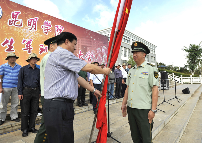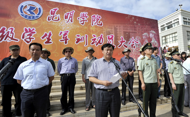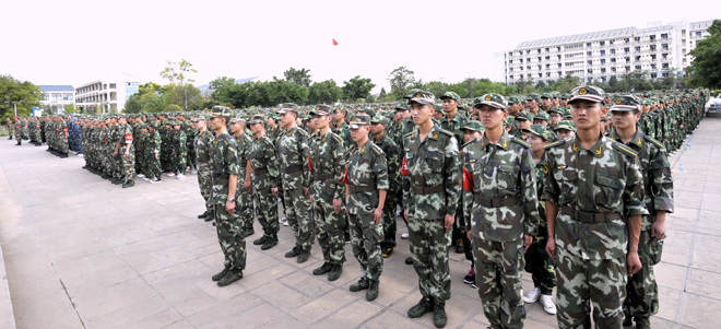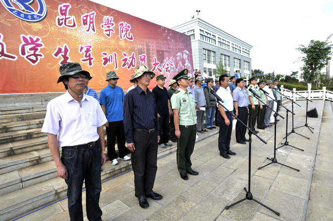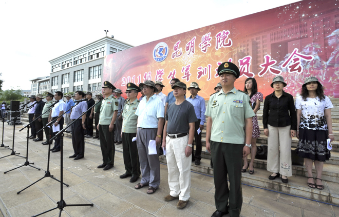 7月7日上午,beat3652011级学生军训动员大会在聂耳广场隆重举行。出席开训动员大会的领导有:学校党委副书记孙勇、副校长李翔、宣传部主持工作副部长董学荣、教务处副处长王韬、学生处处长刘宜萍、保卫处处长方永昆、各院(系)主管学生工作领导,武警边防部队士官学校副校长苏强、训练部部长李荣、学生军训团团长陈应海、继续教育处处长孙利辉。各院(系)带队辅导员、全体承训官兵和2011级4865名参训同学参加了动员大会。大会由李翔副校长主持。