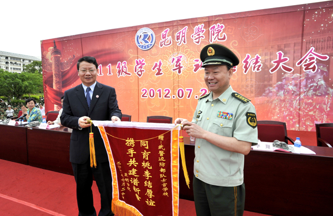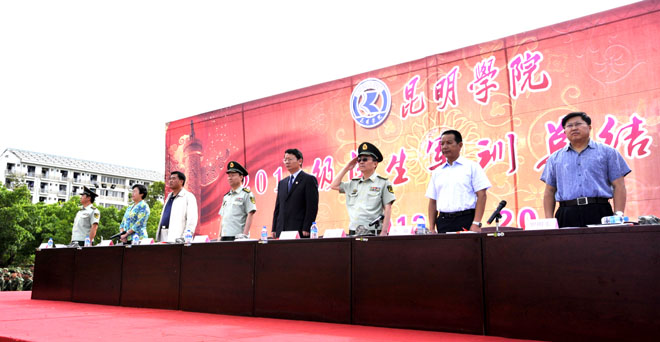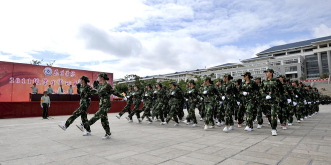 汇报表演结束之后,学校领导对2011级学生为期十四天的军训情况作了总结。罗明东副校长宣读了《关于表彰2011级军训优秀集体、优秀个人的决定》,在这次军训活动中,润泽苑11栋208等18个宿舍获得“内务优秀宿舍”、刘利君等489名学生荣获“军训优秀学员”称号、社会管理学院辅导员余一夫等3名教师荣获“优秀带队教师”称号、沈弘仑等5名教官荣获“优秀教官”称号,与会领导为优秀宿舍和先进个人代表颁奖,陈世波校长为武警边防部队士官学校赠送了锦旗。医学院2011级药学班的郑苑同学代表全体优秀学员以热情洋溢的发言表达了对本次军训的感悟。