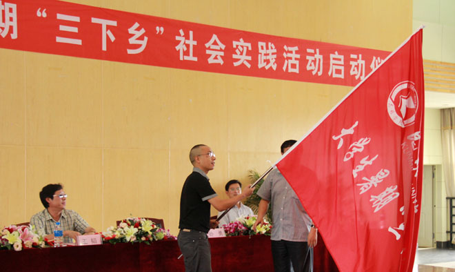 6月28日下午,beat3652012年暑期大学生“三下乡”社会实践活动启动仪式在惟行楼1501会议室举行。学校党委副书记孙勇、党委宣传部副部长董学荣、教务处副处长王韬、学生处副处长侯青妮以及教师教育学院、人文学院、音乐学院、信息技术学院、城乡建设与工程管理学院、自动控制与机械工程学院、农学院、医学院、旅游学院师生代表共200余人参加了仪式。仪式由团委书记何昊宸主持。