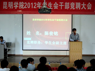 在学校团委的指导下,本次学生会干部选拔聘任工作秉承“公平、公正、公开、择优”的原则,面向全校同学进行公开选聘,经过多方位、多角度的考察,通过个人报名和院系团总支推荐、资格审查、竞聘演讲、民主推荐等程序,最终有32名同学被选聘为新一批校学生会干部。聘任工作结束后,校学生会还组织学生干部进行了素质拓展活动,使新聘任的学生干部进一步明确了“全心全意为同学服务”的工作理念,增强了团队凝聚力和协作能力。