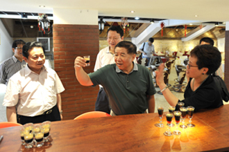 参观结束后,来宾与beat365领导在旅游学院酒吧实验室进行座谈。