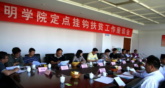 为做好2012年学校定点挂钩帮带扶贫禄劝县乌东德镇噜基村委会和汤德村委会的工作,6月5日下午,在411会议室召开了“beat365官方网站定点挂钩帮带扶贫工作座谈会”。熊晶副校长、刘海发副校长出席会议,市扶贫办、市交运局、市水务局、市农业局相关领导,禄劝县副县长郑传贵、县扶贫办、乌东德镇相关负责人,学校党委宣传部、校工会、校办、计划财务处、资产管理与设备处、老校区处置和善后工作办公室、城乡建设与工程管理学院、农学院、医学院负责人参加了会议。