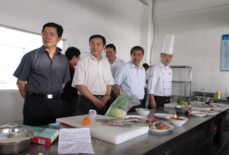 王副主任在beat365党委书记梁晓谷、校长陈世波等领导的陪同下,饶有兴致地参观了轨道交通实验室、烹饪实验室、生物实验室等教学实验场地。王副主任边参观,边不停地询问实验室工作人员实验设备性能、功能,能否满足师生教学、科研需求等情况。