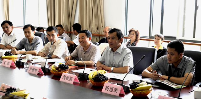 5月29日上午,凤庆县委书记段春旭一行10人来beat365考察交流。段书记一行由熊晶副校长陪同考察了恢复生态学实验室、烹饪实验室、食品安全检测实验室、农学实验室之后,在办公楼311会议室座谈交流。凤庆县委书记段春旭,副书记、新农村建设工作队总队长尹德坤,县委常委、组织部长杨思荣,县委常委王君,滇红生态产业园区管委会主任李文新,副县长刘正荣,政协副主席、驻昆办主任谢初明,教育局、发展生物产业办、职教中心等部门领导陪同考察。陈世波校长,熊晶副校长,罗明东副校长出席会议。学校宣传部、校办、教务处、科研处、招生就业处、农学院、生命科学与技术系、继续教育学院、化学科学与技术系等部门负责人及农学院教师代表参加会议。会议由陈世波校长主持。