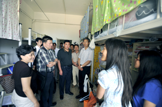 会后,检查组在张寿国副校长、董建华副校长、保卫处、后勤集团、基建处部门领导的陪同下,先后深入到教学楼、学生宿舍、食堂、图书馆消防控制室就beat365消防安全管理工作进行实地检查。在学生宿舍,检查组随机访谈学生,了解学生掌握消防安全常识的情况,对学校的消防安全管理工作进行深入细致的检查。