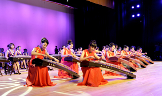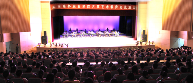 云南商务职业学院学生先后表演了古筝齐奏《北京的金山上》、《沂蒙小调》、《菊花台》;古筝表演奏《笑傲江湖》、《泼水》;古筝弹唱《希望》;古筝与茶艺;古筝与太极拳;古筝独奏《茉莉芬芳》;古筝与舞蹈;古筝与书法;古筝与肚皮舞;古筝二重奏《瑶族舞曲》等节目,演出在60台古筝合奏《渔舟唱晚》、《难忘今宵》中结束。
