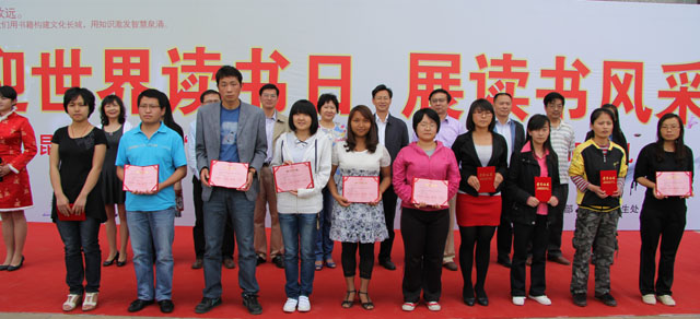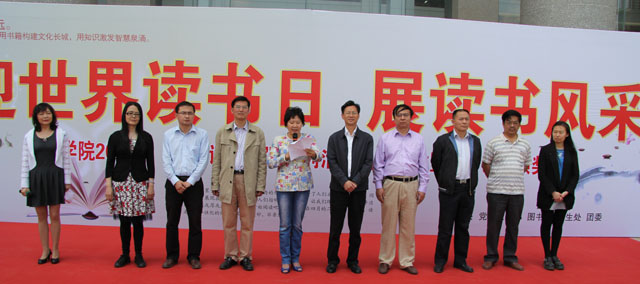 为激发广大读者的阅读兴趣,营造健康向上、积极进取的读书氛围,进一步活跃校园文化生活,4月23日中午,由党委宣传部、图书馆、学生处、团委共同主办的“迎世界读书日、展读书风采”为主题的2012年“世界读书日”系列活动启动仪式在图书馆隆重举行。