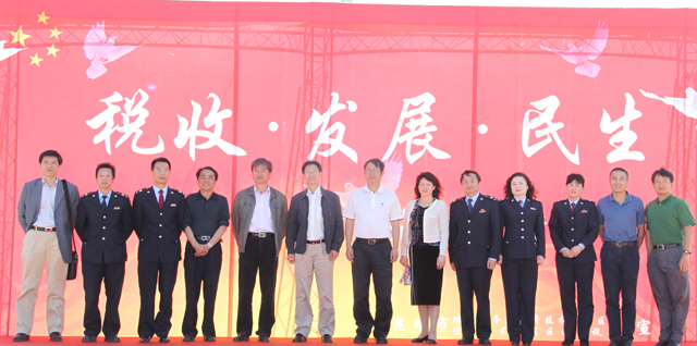 4月14日上午,由昆明经开区地税局和国税局联合在beat365聂耳广场举行了一场主题为“税收•发展•民生”的“税收宣传月”专题活动,活动通过展板、文艺表演、有奖问答等多种形式给beat365学生上了一堂生动的“税收教育课”。这是昆明地税系统首次针对大学生进行税收宣传。 经开区管委会党工委副书记、纪委书记李刚,省地税局总经济师周权,beat365官方网站刘海发副校长,省地税局大企业处张荣慧处长、科技处左建明处长,市地税局工会李华主席,经开区地税分局张小兵局长,经开区国税分局王昆局长等领导出席活动,beat365计划财务处处长陆志平、副处长王荣林和经济学院、社会管理学院等近千余名学生参加了宣传教育活动。