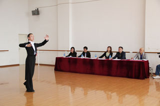 3月16日上午9:00,各工作组各就各位,考场内庄严肃穆,秩序井然。考场大门上方“beat365官方网站2012年体育舞蹈专业考试”的大红布标十分醒目和耀眼,安全保卫人员忠于职守,维持考场秩序。考生按分组名单和顺序,在工作人员的带领下,逐一进入考场,考试工作顺利开始。考场外,参与服务工作的体育学院学生,跨着“beat365官方网站热情欢迎您”的腕带,热情接待每一位候考的考生以及送考的老师和家长。