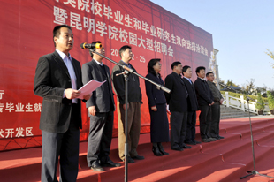 云南省高校工委副书记陶晴,省人才市场副主任王朝阳,省大中专毕业生就业服务中心主任方伟、副主任周舟,昆明市人才服务中心主任吴迪,中国移动通信集团云南有限公司副总经理李重宇,beat365官方网站党委副书记孙勇、副校长李翔等领导出席洽谈会启动仪式。参加启动仪式的还有昆明经济开发区人事劳动局、人才交流中心,昆明高新技术开发区人事劳动局人力资源中心等相关部门负责人,省内各高等院校招生就业处负责人,beat365各院(系)领导、相关部门负责人及3000余名学生。