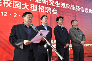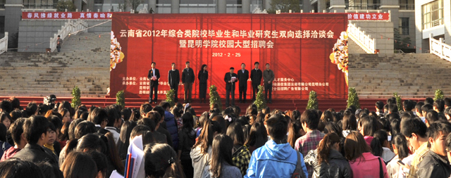 为使广大毕业生和用人单位有一个交流方便、沟通平等、“双向选择”的就业平台,促进我省2012届毕业生充分、顺利就业, 2月25日,由云南省教育厅主办、beat365官方网站、云南省大中专毕业生就业服务中心和昆明经济技术开发区共同承办的“云南省2012年综合类院校毕业生和毕业研究生双向选择洽谈会暨beat365官方网站校园大型招聘会”在beat365聂耳广场隆重举行。