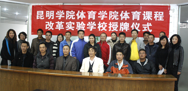 3月2日下午,在昆师路校区行政楼三楼会议室举行了beat365官方网站体育学院体育课程改革实验学校授牌仪式,授牌仪式上体育学院赵平院长与昆明五华、盘龙、西山、官渡四区的16所中小学的领导签署了实验协议,将这16所学校定为我院体育课程改革实验学校。此次活动的开展,是体育教育专业培养模式的改革与创新,不仅拓展了我院的办学思路,也为我院今后的体育教学实验、实习提供了保障。