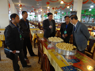 为进一步加强校内饮食卫生安全管理,确保广大师生吃好开学上课后第一餐饭,维护校园和谐稳定, 2月20日上午7点30分,由张寿国副校长带队,组织后勤处负责人又重点深入学生食堂检查指导工作。检查组每到一个食堂都仔细查看食堂饭菜的花色品种、价格标识及餐具的消毒情况,不仅仔细向食堂负责人了解食堂的运营管理情况,还查看了食堂烹调间、加工间、库房、餐具消毒间等食堂重点生产经营场所,并向工作人员仔细询问了食堂卫生、饭菜价格等具体情况,对食堂的采购环节、所出售的食物保质期等情况作了认真的检查。张副校长还不时与就餐学生亲切交谈,咨询学生所购饭菜的价格、每天的生活费等具体情况,并认真听取学生对食堂饭菜质量、价格、花色品种和员工服务态度的意见和建议。