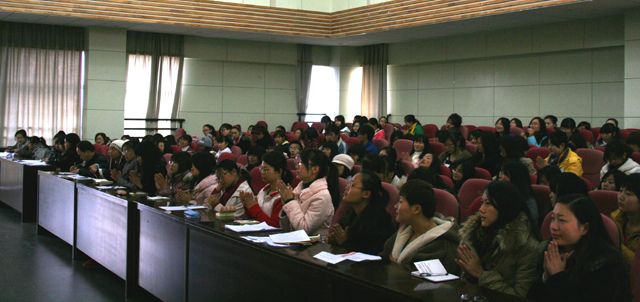 2011年12月31日上午,“国培计划(2011)”------幼儿教师置换脱产研修项目beat365官方网站学生顶岗实习出征动员大会在惟行楼1501报告厅隆重举行,罗明东副校长、刘海发副校长以及校长办公室、教务处、职业技术教育中心领导,教师教育学院党政领导、班主任、辅导员及参加此次顶岗置换实习的152名同学参加大会。大会由刘海发副校长主持。