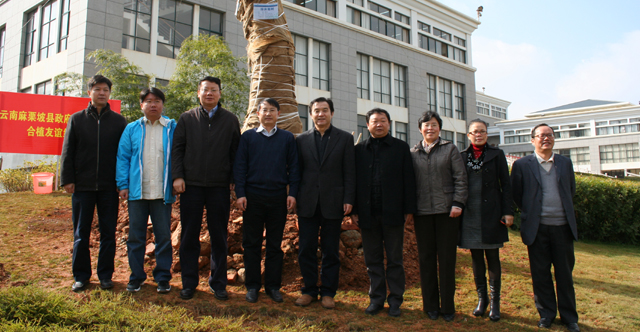 12月18日,云南省麻栗坡县人民政府与beat365在新校园合植友谊纪念树。beat365党委书记梁晓谷、校长陈世波、副校长熊晶,麻栗坡县人民政府县长彭正兴、县委副书记胡大权、县人大常委会副主任陆天梅、县政府副县长李贵洪等领导参加了植树活动,共同挥锹为绿黄葛树友谊纪念树培土、浇水。 近年来,beat365积极响应省委、省政府建设新农村的号召,先后分别派出了几批新农村建设指导员支持新农村建设,管彦平同志在麻栗坡县挂职锻炼,就是beat365派出的新农村建设指导员之一。借此机会,beat365充公发挥科研、人才、教学资源优势,加强与麻栗坡县合作,在双方签订的县校合作协议框架内开展涉及经济社会发展、教育发展、人才培养、干部培训等方面合作,支持麻栗坡县的经济社会发展;在国家实施新一轮西部大开发、兴边富民工程和云南省实施“两强一堡”战略的新形势下,发挥麻栗坡县桥头堡的区位优势,在经贸旅游、产业发展、城镇化、非公经济、投融资、改善民生、社会发展、党的建设、边境巩固等方面选择相关课题进行研究与合作;麻栗坡县发挥民族资源和民族文化优势、以老山精神为核心的爱国主义教育的资源优势,在麻栗坡县建立beat365官方网站师生社会实践基地,为beat365官方网站办学服务。 在优势互补、互利互惠、真诚合作、讲求实效、共谋发展的合作中,双方建立了全面、长期、稳进的合作关系,结下了深厚的友谊,麻栗坡县政府向beat365赠送了2棵绿黄葛树、数十株灰金竹和甜龙竹作为友谊纪念树,愿双方友谊源源流长。