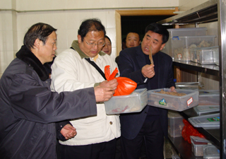 考评组一行先检查了beat365生科系化学危险物品保管室,对化学危险物品的购买、保管、安全防范等问题进行了详细了解;在润泽苑食堂,检查了操作间、储物间和仓库,与在食堂巡逻执勤的学生治安服务队亲切交谈;在润泽苑宿舍,检查了宿管的门卫登记制度;在保卫处会议室,查阅了学校创建平安校园的工作台帐。