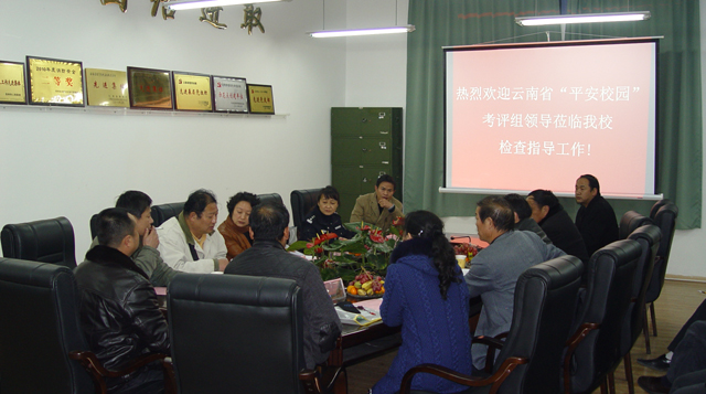 12月23日下午,由云南省教育厅、云南省治安总队、昆明市公安局经济文化保卫分局组成的云南省“平安校园”检查考评组莅临学校对beat365创建省级平安校园进行检查考评。