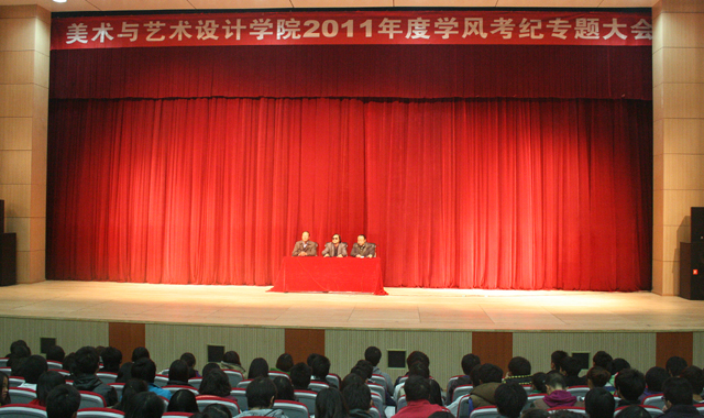 12月4日下午,美术与艺术设计学院在学生会堂召开了“2011学风考纪专题大会”,学院党政领导、全体教师和学生参加了会议。会议由美术与艺术设计学院党总支书记李晋德主持。