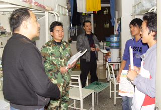 二是深入学生宿舍开展“面对面”的安全宣传教育。11月13日至25日,保卫处干部带领学生治安服务队深入学生宿舍,以润泽苑女生宿舍违规使用电器引发火灾事故为案例,向同学们宣讲交通安全和消防安全方面的知识。同时向同学们发放由学生处、保卫处制作的安全日历及关注交通安全、参与清剿火患和违规使用电器危及宿舍安全等宣传资料6000余份,并向同学们收集学校安全管理工作的意见和建议。