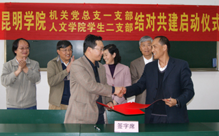 启动仪式上,机关党总支一支部书记陈开祥老师,人文学院党总支学生二支部书记贾斌老师分别就两个支部的基本情况和党建工作情况进行了介绍,并就共建内容签署了合作协议;人文学院院长桂彦南、总支书记杨爱民、机关党总支书记梁艳萍等老师分别与参会