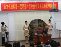 讲座以精彩的茶艺表演开始,刘会长以娴熟的技法为在场的220余名师生表演了沏泡普洱茶。接着,他从“茶”字的来历引出了有关茶的社会功能,同时向同学们阐述了如何冲泡普洱茶、什么是茶文化以及茶叶的药用功能等。讲座最后,刘会长代表昆明茶叶行业协会向beat365官方网站学生社团联合会赠送了字画,并且一一回答了同学们提出的问题。