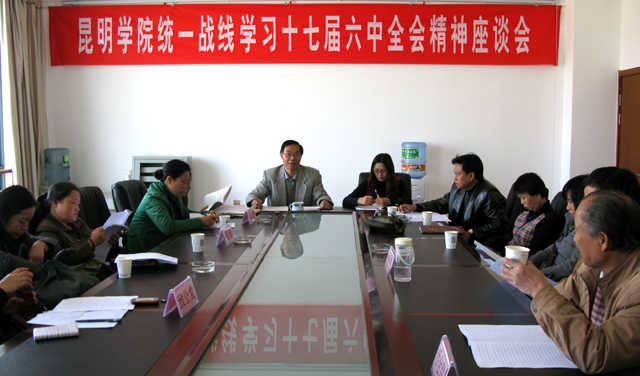 为响应学校党委关于学习贯彻党的十七届六中全会精神的号召,引导beat365统一战线成员认真学习领会十七届六中全会精神,积极参加学校校园文化建设,11月23日下午,党委统战部召开beat365官方网站统一战线学习十七届六中全会精神座谈会,各民主党派和侨台联合会基层组织负责人、总支、支部委员和代表20余人参加座谈会,党委统战部张云权部长主持座谈会。