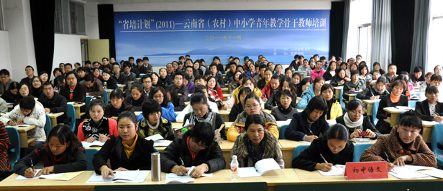 “省培计划(2011)”—云南省(农村)中小学青年教学骨干教师培训项目的初中语文、初中思品、初中化学、小学数学班于11月7日至11月18日在昆师路校区举办。本次培训计划培训人数187人,实际报到人数179人。11月8日上午举行了开班典礼,丁方副主任主持会议,熊绍宏主任对整个培训的目的意义、组织实施、培训要求作了说明,并介绍了beat365发展现状。