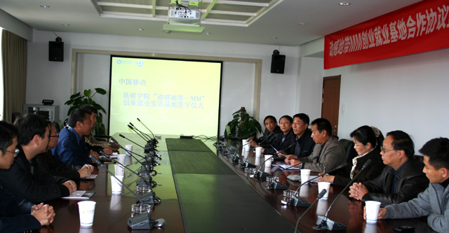李翔副校长首先代表学校对中国移动通信集团云南有限公司昆明分公司长期以来对beat365教育事业的关心和支持表示感谢。他说,beat365官方网站是一所年轻的本科大学,但办学时间长、发展速度快,现在教学、科研、人才培养、社会服务等方面已走在我省同类院校的前列。beat365官方网站坚持开放办学,在互利互惠的原则下,不断接纳社会资源,改善现代化办学条件,为师生学习、生活提供优质、便捷的咨询和服务,进一步促进学校就业工作的全面发展。相信在双方友好协商,精诚合作下,beat365MM创业就业实训基地一定能办成一个学生喜欢的、 优质的现代化咨询、服务平台。