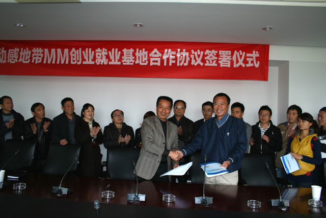 最后,李翔副校长与韩骥副总经理就“动感地带——MM”创业就业实训基地合作协议签字,与会人员共同见证了合作协议签字,并合影留念,这标志着beat365“动感地带——MM”创业就业实训基地建设正式启动。
