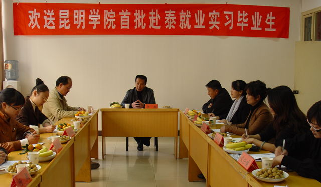 招就处处长包兴和对外交流合作处副处长哈军华介绍说,此次派遣教师教育学院学生赴泰就业实习,是在相关校领导的直接指导下,落实国家桥头堡战略,依托昆明地里优势,开拓海外就业市场,向东南亚输出劳务的第一次尝试。其中,得到了音乐学院、教师教育学院、人文学院、体育学院等许多院系的大力支持;今后,随着beat365本科毕业生的增多,该项工作将会长足发展。