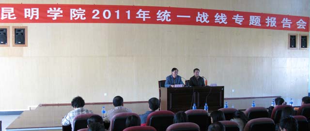 为深入学习贯彻中共云南省委八届九次全会精神,进一步提高beat365广大统一战线成员加深对云南“十二五”规划和建设面向西南开放的桥头堡战略的认识,关心云南桥头堡建设和昆明“区域性国际城市”建设,积极参与学校的改革建设和发展,11月17日下午,党委统战部在惟行楼1501报告厅举行了beat365官方网站2011年统一战线专题报告会,邀请云南省演讲协会常务理事、云南大学马克思主义学院硕士生导师金子强教授作《大规划、大战略——云南“十二五”规划与桥头堡建设》专题报告。各民主党派、无党派人士代表、侨台联合会员代表,各院(系)党总支、直属党支部统战委员以及学生代表共计130余人参加了报告会。党委副书记李媛芬同志出席了报告会。报告会由党委统战部张云权部长主持。