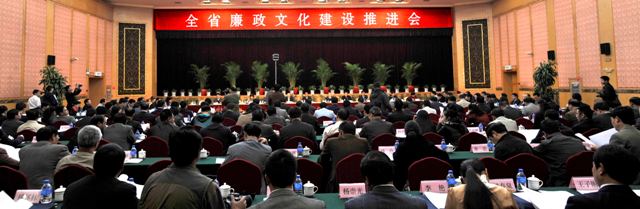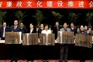 省委常委、省纪委书记李汉柏出席会议并作了重要讲话,李书记强调:一要自觉服从服务与改革发展稳定大局和反腐倡廉工作全局,把廉政文化建设融入到经济建设、政治建设、社会建设、生态文明建设和党的建设之中,寓于惩防体系建设的各个环节,坚持廉政文化建设的正确方向;二要进一步扩大廉政文化的影响力,使廉政文化建设更加贴近实际,深入社会各领域,成为推进城防体系建设的重要抓手;三要始终把领导干部作为重点,结合实际凸现工作亮点,大力创建廉政文化示范点,确保廉政文化建设取得实效;四要进一步加强警示教育基地建设,把我省历史文化资源转化为廉政文化产品,加强互联网廉政文化阵地建设,不断提升廉政文化建设的内涵和质量;五要进一步健全完善工作机制,切实加强组织领导,形成全省上下共同关心、广大干部群众踊跃参加与廉政文化创建活动的良好态势,进一步开创我省廉政文化建设新局面。