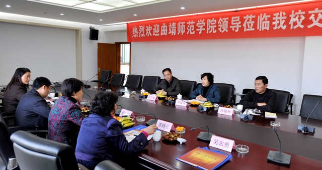 曲靖师院党委副书记杨思娅在听取介绍后,首先感谢beat365官方网站的热情接待。她说,曲靖师院与beat365官方网站有很深的渊源,两校之间联系交流紧密,这次很高兴带队到beat365官方网站参观交流,其目的是来取经学习,通过对口部门之间的座谈交流,进一步加深两校之间的了解和沟通,达到相互促进、取长补短、推进工作发展的目的。随后,杨副书记介绍了曲靖师院在校园文化、宣传、工会等方面的建设发展情况及经验和做法。