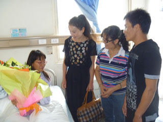 9月9日,受beat365校领导的委托,学生处吴蓉处长、数学系党总支蔡华仙书记、团总支负责人鲁老师、辅导员施老师及学生处工作人员和学生代表一行,到昆明解放军总医院慰问李巧和同学及其家长,向他们表示中秋的祝福和良好的祝愿。