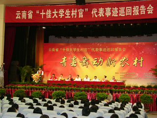 由云南省委组织部、云南省委宣传部、云南省高校工委、省教育厅、省人力资源和社会保障厅、共青团云南省委联合组织主办的云南省“十佳大学生村官”代表事迹巡回报告会于9月19日在云南大学举行首场报告会,beat365熊晶副校长、党委组织部杨璐部长、人事处杨斌处长、招生就业处包兴处长参加了报告会。