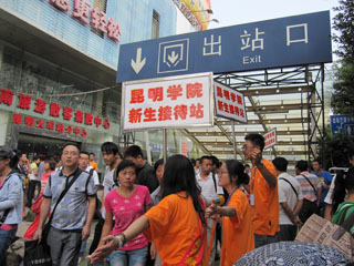 | 根据学校对2011年新生接待工作的部署和安排,8月29日至30日,校团委2011年新生接站及志愿服务工作全面展开。为更加全面、细致地做好此项工作,校团委前期进行了周密地安排和部署,在火车站设立新生接待服务中心,在飞机场、各长途汽车站及西北部客运站共设立6个新生接待咨询点,并在校园内设立了7个新生接待志愿服务站。