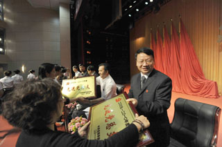 6月24日上午,beat365在洋浦新校区学生会堂隆重召开庆祝中国共产党成立90周年大会。全体校领导,各党总支、直属党支部师生党员代表,新党员和入党积极分子共1300余人参加了庆祝大会。大会由校党委副书记、校长陈世波主持。