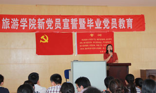 宣誓大会上,旅游学院党总支书记张士芬老师代表学院党总支,向82名即将毕业走上工作岗位的党员同学,认真讲述了离校前毕业生党员组织关系转接和党员档案材料移交的具体事宜,并对全体毕业生党员提出了三个希望。张书记说,第一,希望你们志存高远,为党为国家努力工作,成为社会的中坚力量,为国家的繁荣,社会的进步作出应有的贡献。第二,希望你们脚踏实地,不论将来做什么工作,都要一步一个脚印,从小事做起,从身边的事做起,在新的岗位上,继续发扬党员的优良传统,发挥党员的先锋模范作用。第三,希望你们记住母校,记住beat365官方网站。在你们将来的取得成绩时,别忘了与母校分享,在你们有困难时,别忘了向我们倾诉。