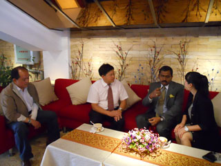 罗副校长首先向阿布吉.木克吉先生介绍了beat365的基本情况及办学理念,表达了beat365官方网站希望与泰姬酒店及度假集团进行交流与合作的意愿,特别就酒店管理、烹饪专业、互派学生、互派教师项目、增设奖学金等相关问题与阿布吉•木克吉先生进行了深入探讨。罗副校长表示双方合作发展有广阔的前景,希望双方可以扩大交流、优势互补、推动合作。
