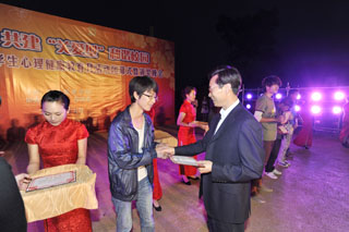 闭幕式上,孙勇副书记作了讲话。他指出:加强和改进大学生心理健康教育是新形势下全面贯彻党的教育方针、推进素质教育的重要举措;是促进大学生健康成长、培养高素质人才的重要途径;是保持校园稳定、促进学生成才与发展的基础性工作。beat365对大学生心理健康教育一直十分重视,组建了专门工作机构,建立了工作网络和机制,开展了大量卓有成效的工作,每年一次的心理健康教育月活动,已经形成了特色。本次活动月围绕“心怀感恩,共建‘关爱型’校园,打造和谐大学”这一主题,开展了一系列内容丰富、形式多样的活动。各项活动在师生中产生了良好反响,本次活动影响面大、学生参与性强、成效明显,为进一步搞好学校的心理健康教育积累了有益的经验。孙副书记要求,在今后的工作中,要统一思想,结合工作实际,把握工作重点,促使beat365心理健康教育经常化、规范化、制度化,要坚持以全体学生的健康成长和全面发展为中心,以预防为本,发展为主,全面提高学生的心理素质。