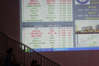 5月14日,城建学院派出苏欣、郭丽辉二位指导老师和土木工程专业2008级李庆、冯琪、苏俊驰、旃娟和何松原五名同学组成代表队参加总决赛。在各个单项的比赛中,五位同学在结构设计单项、安装算量单项、三维算量的单项比赛中都一度位列第一,在现场的实时比赛成绩排行榜上长时间的名列前茅,被所有参赛院校关注。