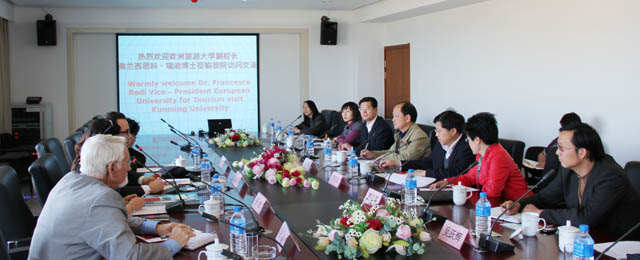 瑞迪博士对beat365官方网站的热情接待表示了感谢,他也介绍了欧洲旅游大学的情况,他说欧洲旅游大学是由欧盟成员国的14所旅游大学联合成立的高校,学校分布在意大利、法国、西班牙和阿尔巴尼亚等国,总部在阿尔巴尼亚。瑞迪博士此行希望能够与beat365官方网站在合作办学方面达成框架性协议,为进一步开展合作奠定基础。