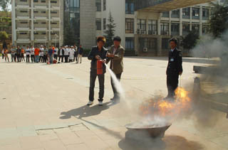 为认真贯彻落实《云南省教育厅转发云南省人民政府办公厅关于进一步做好冬春季消防工作的通知》文件精神,切实做好我院春季消防安全工作,保卫处、后勤处于3月10日下午联合举办了我院2011年消防知识培训和实战演练。学院张寿国副院长,保卫处主持工作副处长方永昆、副处长吴向东,后勤处党总支书记冯坚出席培训和演练,学院食堂、超市、宿管中心及后勤承包经营单位100余人参加培训和演练活动。