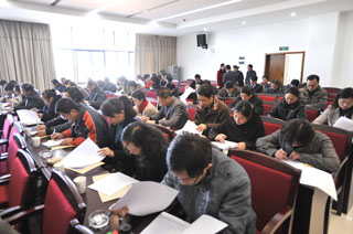 2010年12月31日,云南省高校推进惩治和预防腐败体系建设暨党风廉政建设责任制及领导班子和领导干部检查考核组第五组一行12人,在组长省教育厅副厅长邹平、副组长保山学院党委副书记杨耀程的带领下,对我院进行2010年度落实惩治和预防腐败体系建设暨党风廉政建设责任制检查考核、领导班子和领导干部年度考核及干部选拔工作“一报告两评议”考核。我院领导班子全体成员,中层正职领导干部(含主持部门工作的副职领导干部),近三年退休的院级老领导,部分党代表、人大代表、政协委员,民主党派基层组织主要负责人,教职工代表140余人参加了检查考核汇报会。 汇报会由我院党委副书记、院长陈世波主持,他代表beat365官方网站党政领导班子、全体干部师生对省委高校工委第五考核组的到来表示热烈欢迎。陈院长说,这次检查考核会,是根据《中共云南省委高校工委关于开展2010年度高校推进惩治和预防腐败体系建设暨党风廉政建设责任制检查考核及领导班子和领导干部考核工作的通知》的要求召开的,是省高工委对我院2010年度落实惩治和预防腐败体系建设暨党风廉政建设责任制检查考核、领导班子和领导干部年度考核及干部选拔工作“一报告两评议”进行的年度检查考核。
