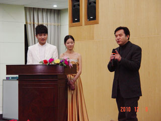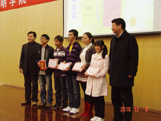 音乐系的孙兰鹃教授和在全国“青歌赛”中脱颖而出的云南歌唱组合 “一窝雀”之一的我院音乐系龚婷老师、学生 “六朵花”合唱队也赶来助兴。她们精彩的演出的演唱,同时也展现了师生爱校的情怀与丰富多姿的艺术才华。 在颁奖晚会上,梁书记和陈院长应主持人的采访,即兴发表了热情洋溢的讲话。陈院长深情地说:“听了同学们的深情朗诵,我沉了,醉了,沉醉在美丽的校园中,更沉醉在同学们的才情中。在这里,我深深感受到了作为一名参与建设洋浦校园大学校长的责任。每时每刻,我都在想,要如何把同学们培养成优秀的人才。我不懂文学,也不通艺术,但我尊重文学。没有激情,没有对生活的热爱,没有高尚的情操,是无法创作出优秀的作品的。我希望同学们能够热爱校园,热爱祖国,热爱我们的民族。很多文学家都是从校园里走出来的,很多大家都是从小事做起的。希望同学们能够跟着老师好好做学问,将来能够成为文学家、政治家、艺术家。” 紧接着梁书记动情而洪亮地表明:“刚才陈院长说出了beat365官方网站党政领导班子和我们全院教职工对同学们的心声。听了大家以‘我爱新校园’为题所创作的各种体裁的作品,我非常激动,仿佛又回到了年轻时代。我的年轻时代没有同学现在这么幸运,没有进过这么好的大学校园,我为大家能够在这样美丽的校园里读书感到欣慰,因为我们为大家创造了一个好的读书环境!我在此祝贺获奖的每一位同学,也要对参加了此次征文活动但没有获奖的每一位同学说一声:谢谢你们!你们用你们的眼睛,你们的心灵,感受到我们新校园的美丽。希望我们的新校园能够成为你们成长路上的一个为你们送行的家庭!希望beat365官方网站里的每一位同学,能够用更加壮丽的篇章,去书写你们辉煌、美丽的人生!” 最后,学院领导分别与获奖者和表演者合影留念。学院领导的深切关怀和殷切希望使获奖同学激动不已。他们说:“这么多领导给我们颁奖,对我们寄予厚望,是我们终生难忘的事情。今后我们一定要在美丽的校园努力学习,健康成长,决不辜负各位领导和老师的期望!”