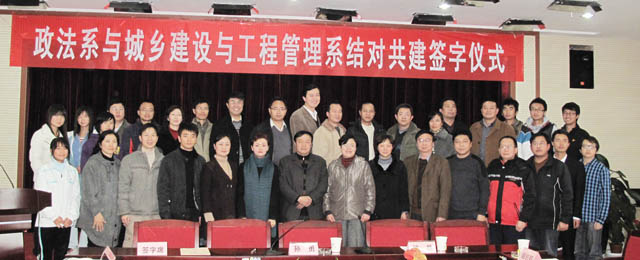 在《政法系与城乡建设与工程管理系结对共建的工作规划》协议中,两系明确了党建、教学、科研、学生工作等方面的合作内容,旨在进一步加强合作、优势互补、共谋发展、共同提高。